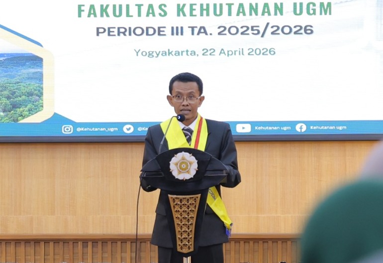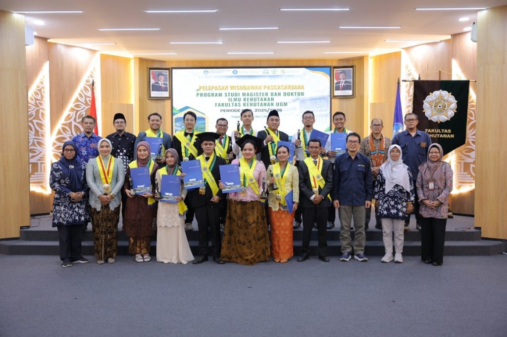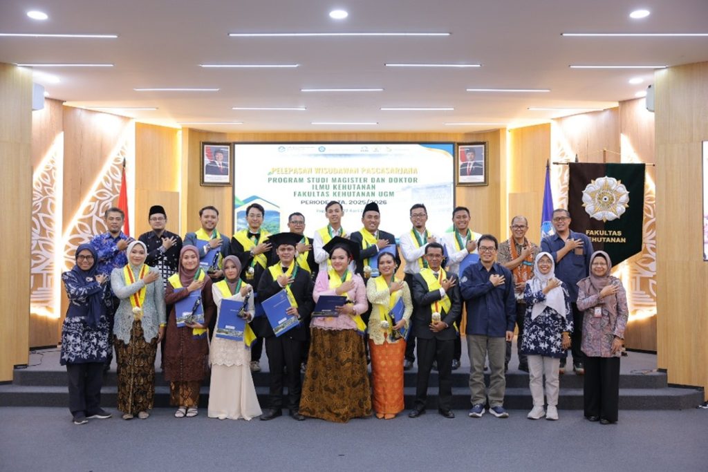 Yogyakarta, 22 April 2026 — Fakultas Kehutanan Universitas Gadjah Mada kembali menggelar acara Pelepasan Wisudawan/Wisudawati Program Magister dan Doktor Ilmu Kehutanan Periode III Tahun Akademik 2025/2026 di Auditorium Fakultas Kehutanan UGM. Kegiatan ini menjadi penanda penting bagi para lulusan dalam menutup masa studi sekaligus memulai peran baru di dunia profesional, khususnya dalam bidang kehutanan dan lingkungan. Acara dibuka secara resmi dan dilanjutkan dengan menyanyikan lagu Indonesia Raya, Hymne Gadjah Mada, serta Mars Rimbawan yang menambah suasana khidmat.
